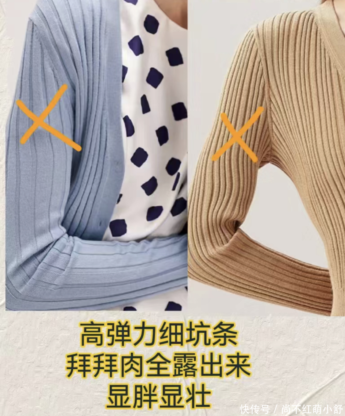 其次,微胖女生应该肃清粗针线,因为针线越粗,廓形越蓬松的反而显胖,像落肩袖粗针会拉宽上半身,尤其是肩优容的身型要幸免踩雷。