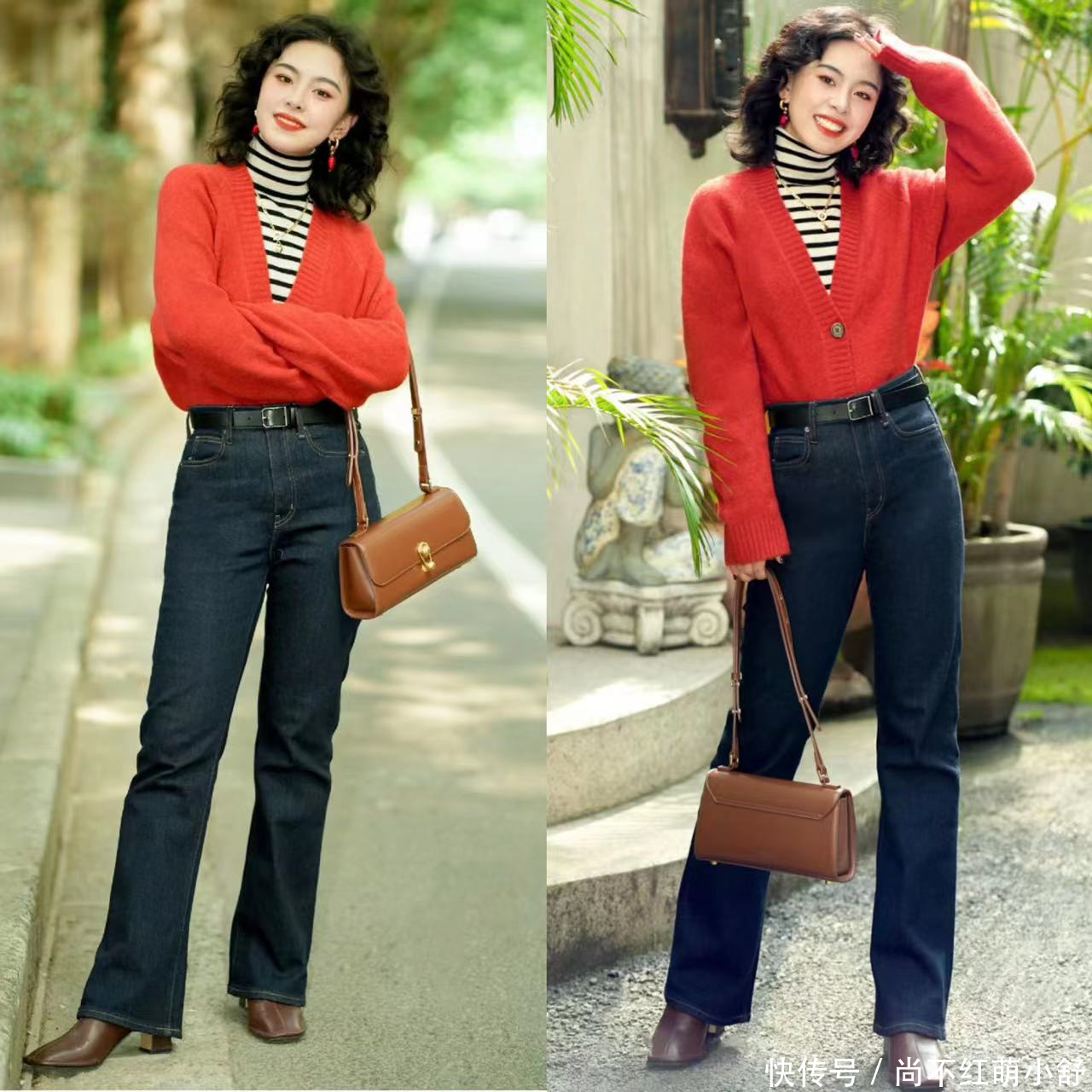 心爱复旧风的中年女性,这套红色系的竭诚衫+高腰牛仔裤的搭配示范,展现出了闲暇前锋的嗅觉,民众照穿也端淑。