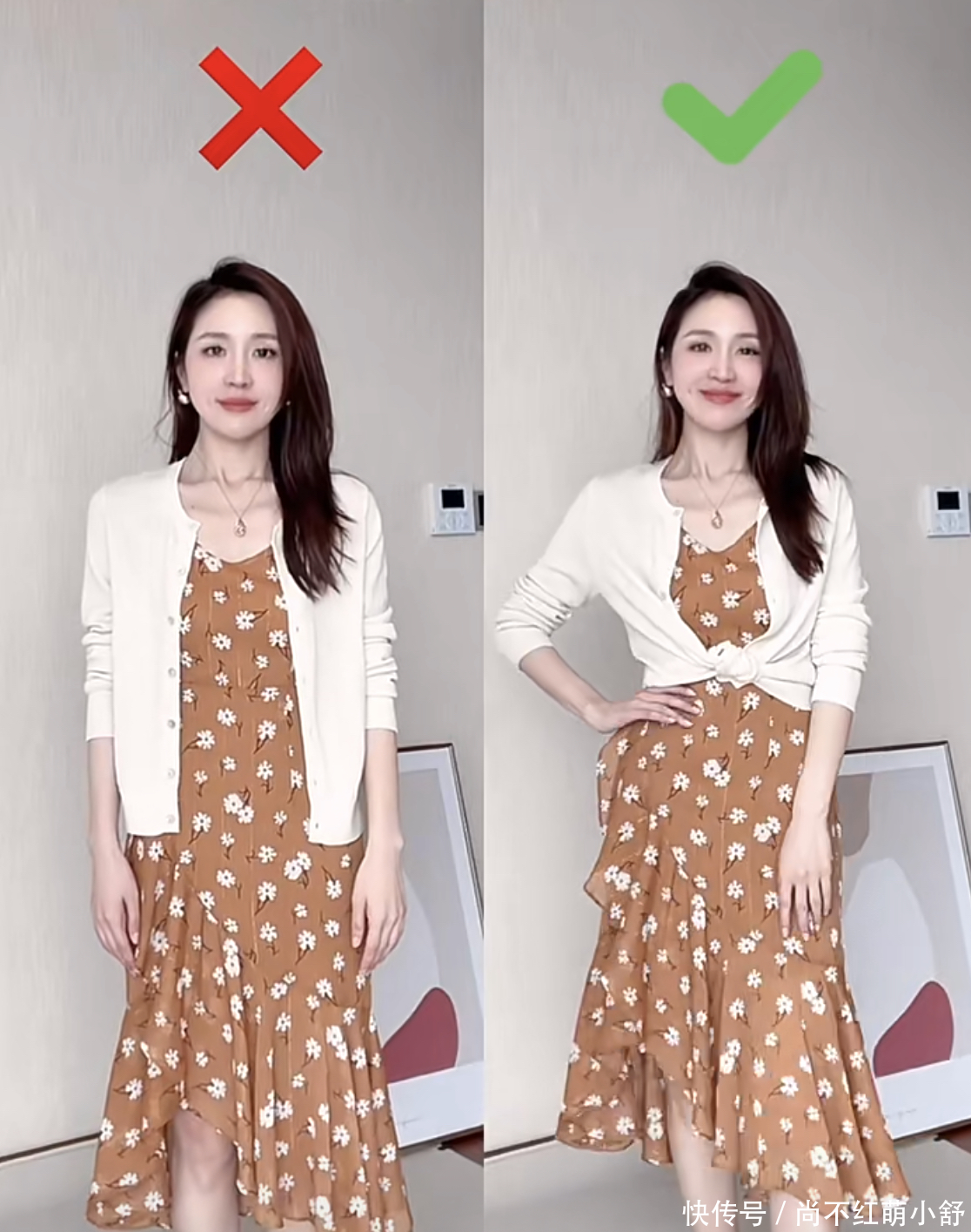 若是念念要显高又要遮胯的活动很浅近,不错借用胸针别住腰部的皱褶或然在腰间打一个结,这么穿有女东说念主味的同期显瘦又显高。